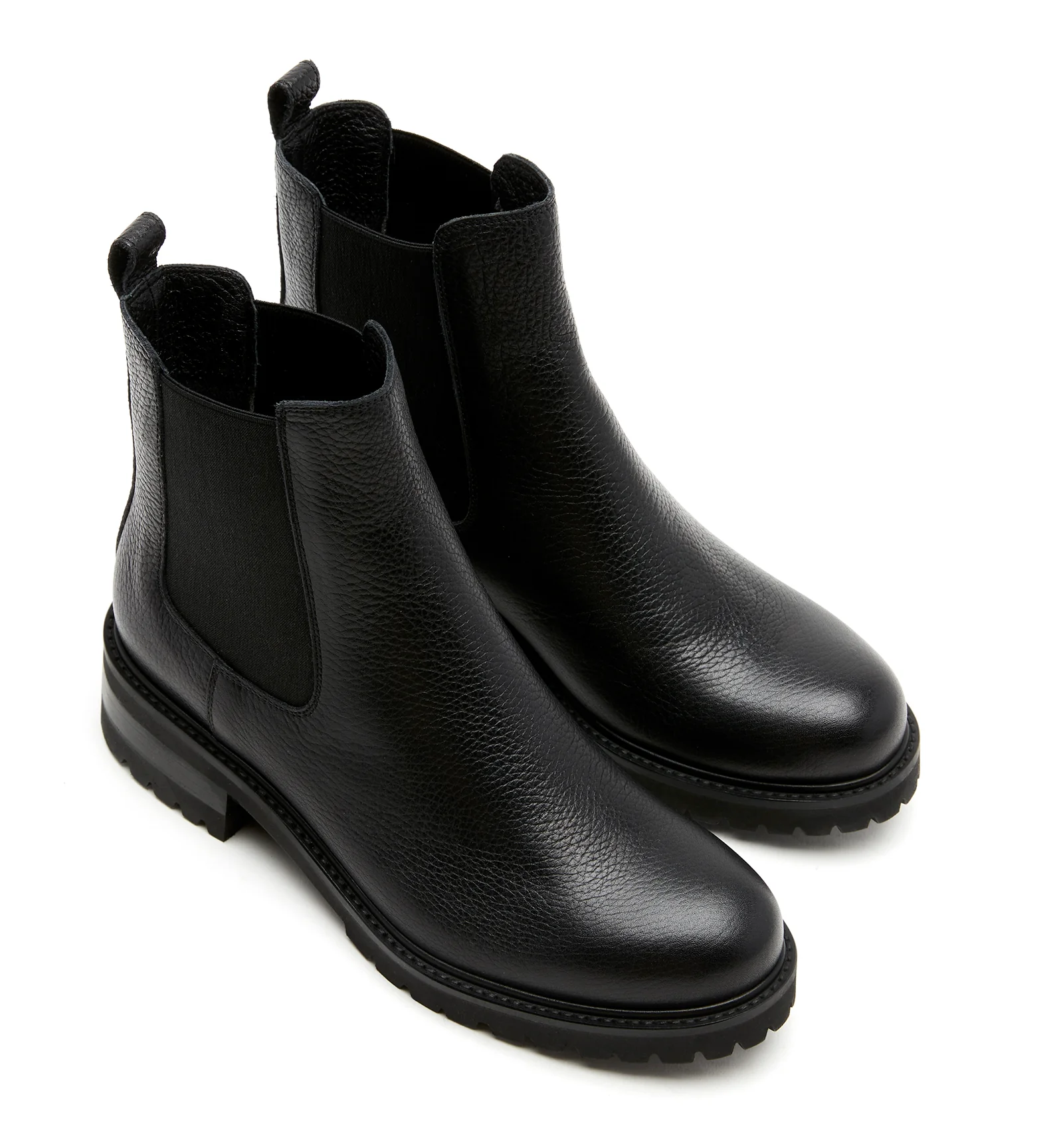 Classic Chelsea leather bootie featuring a sturdy lug sole, a round toe, gore insets on both sides and a light weight sole.
