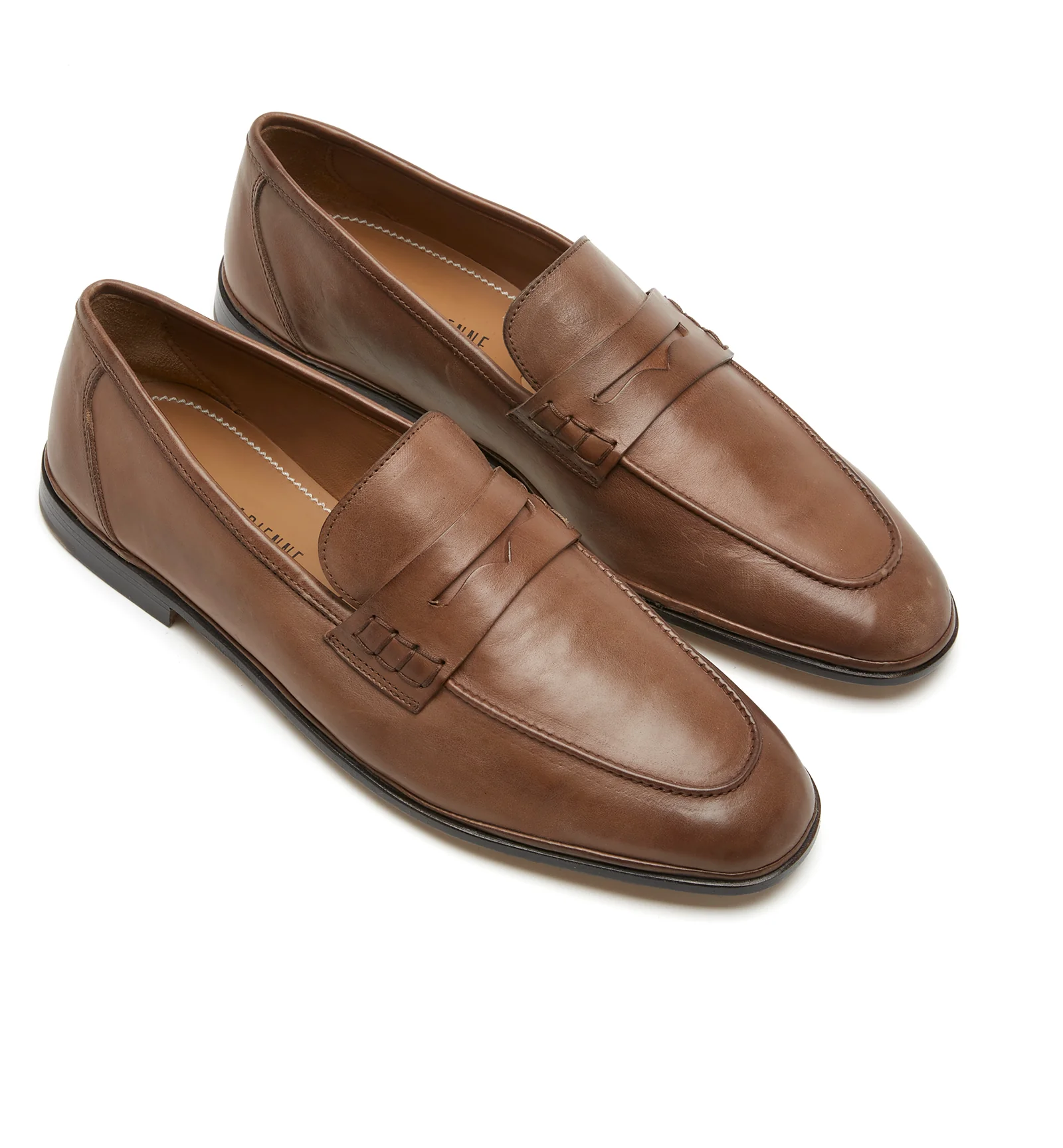 A men's classic penny loafer in leather with traditional stitching details. Features a leather and rubber sole with stacked wooden heel and a comfortable slip-on design.